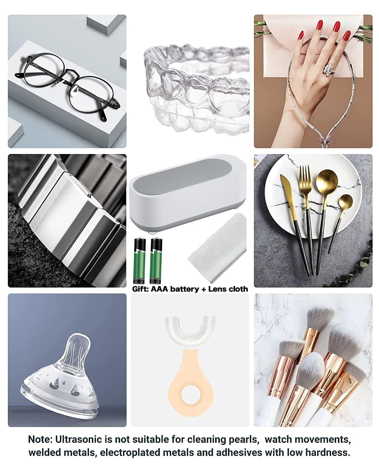 The Ultrasonic Cleaner is perfect for cleaning a wide variety of items: jewelry, eyeglass frames, razors, dentures and much more. One device for all your cleaning needs!